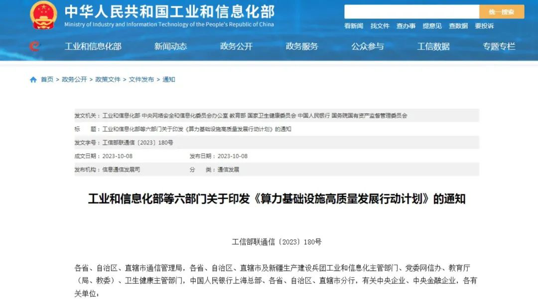 六部門(mén)聯(lián)合發(fā)文,加大對(duì)算力重點(diǎn)項(xiàng)目的支持