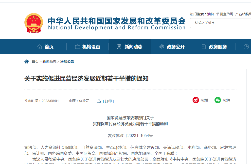 日前,國家發(fā)展改革委網(wǎng)站發(fā)布關(guān)于實施促進民營經(jīng)濟發(fā)展近期若干舉措的通知。