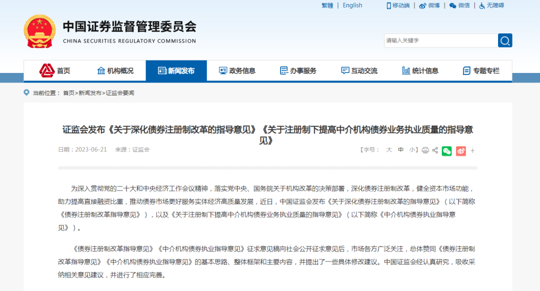 中國證監(jiān)會發(fā)布指導(dǎo)意見,深化債券注冊制改革